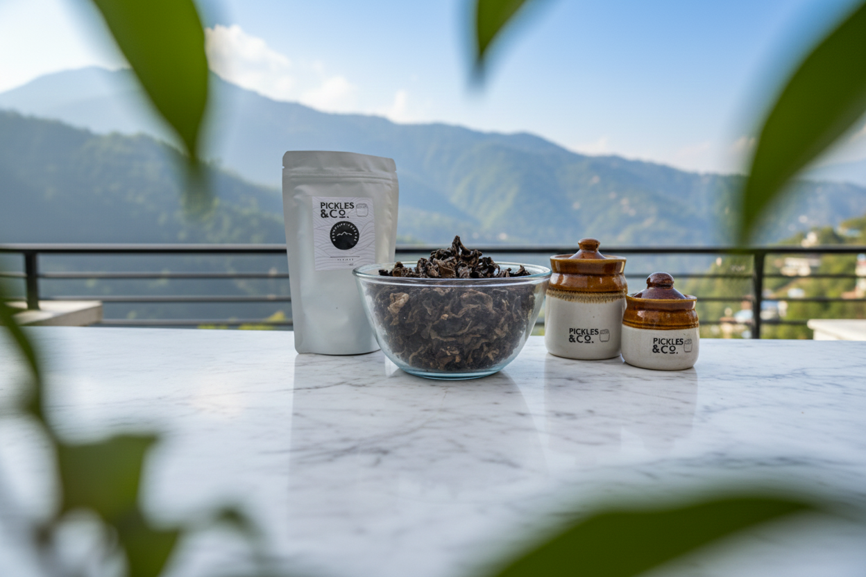 Sustainably sourced from Bhutan, our Dried Black Fungus Mushrooms (also known as wood ear mushrooms) are prized for their mild flavour and unique, crunchy texture. A staple in East Asian and Himalayan cuisine, they're perfect for soups, salads, and stir-fried dishes. Pickles & Co is proud to offer these nutrient-rich mushrooms as part of our commitment to authentic, high-quality food that connects you to the mountains with every bite.